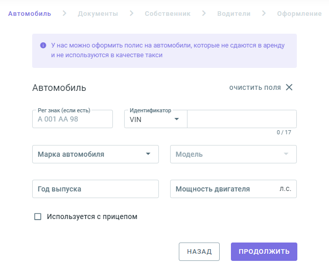 Подключена форма оформления ОСАГО.