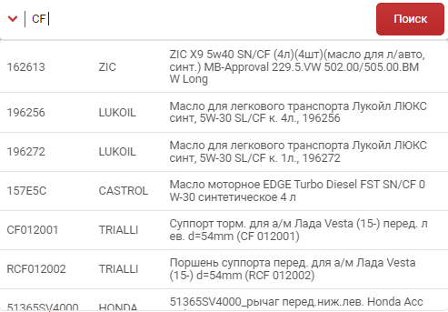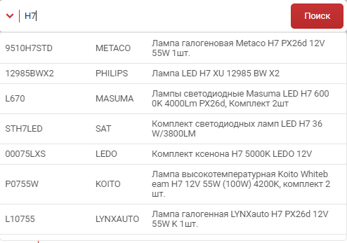 В поиске по артикулу сделали минимальное количество вводимых символов для начала поиска равным 2. Некоторые ключевые параметры товаров имеют обозначение как раз из 2-х символов (допуски масел, цоколи ламп и т.д.)